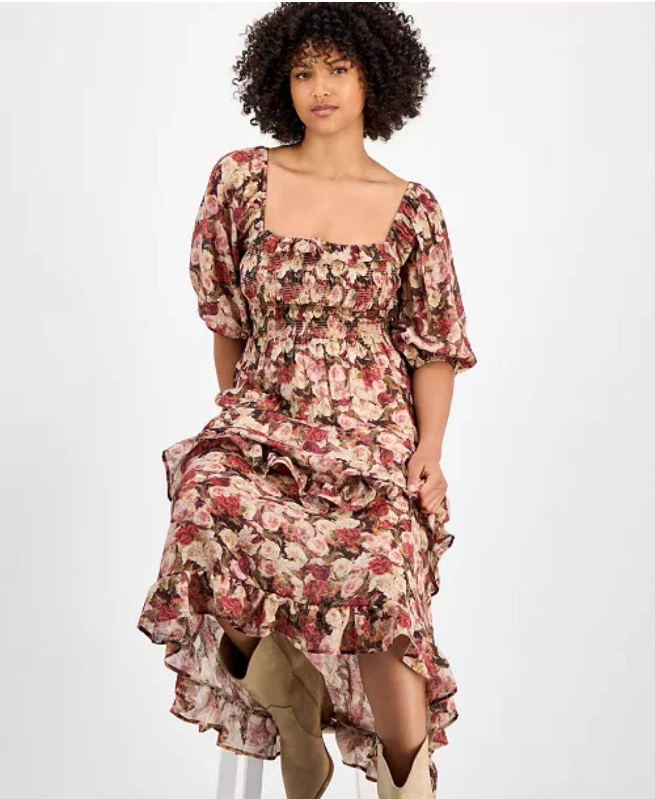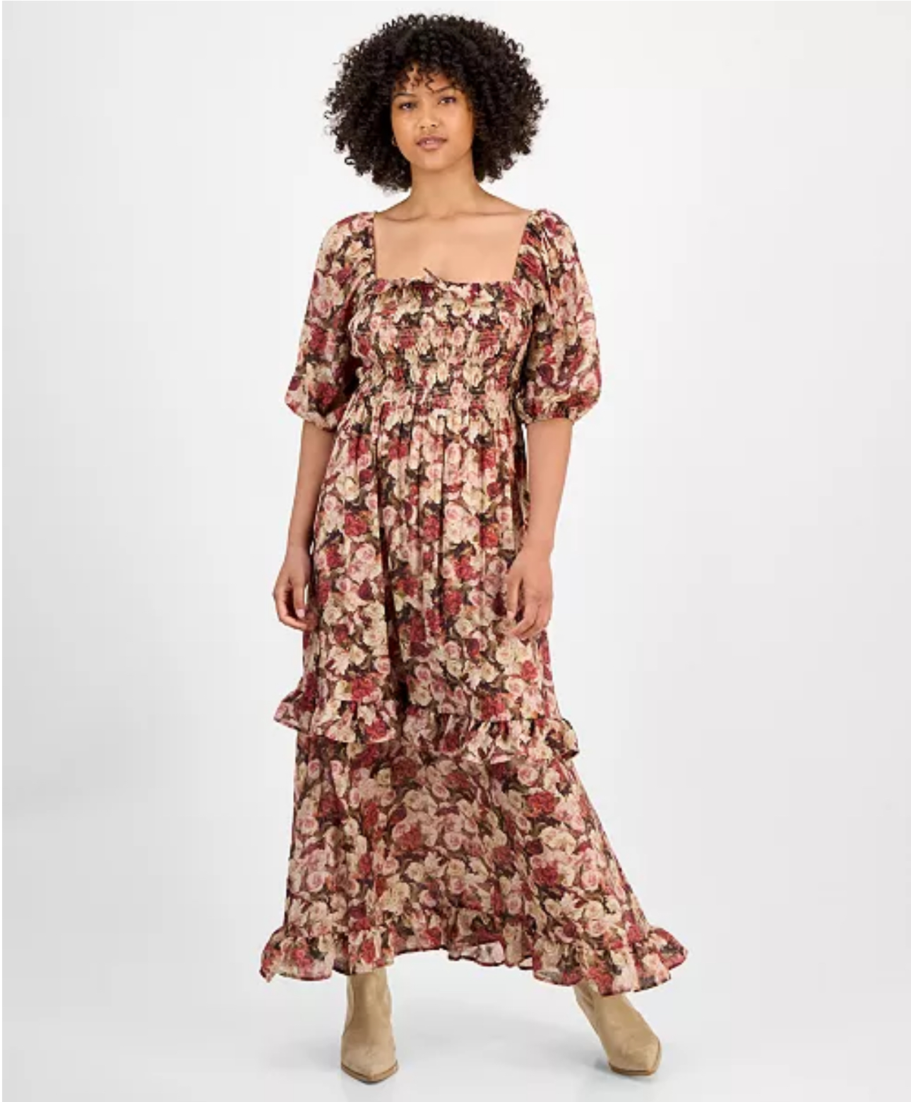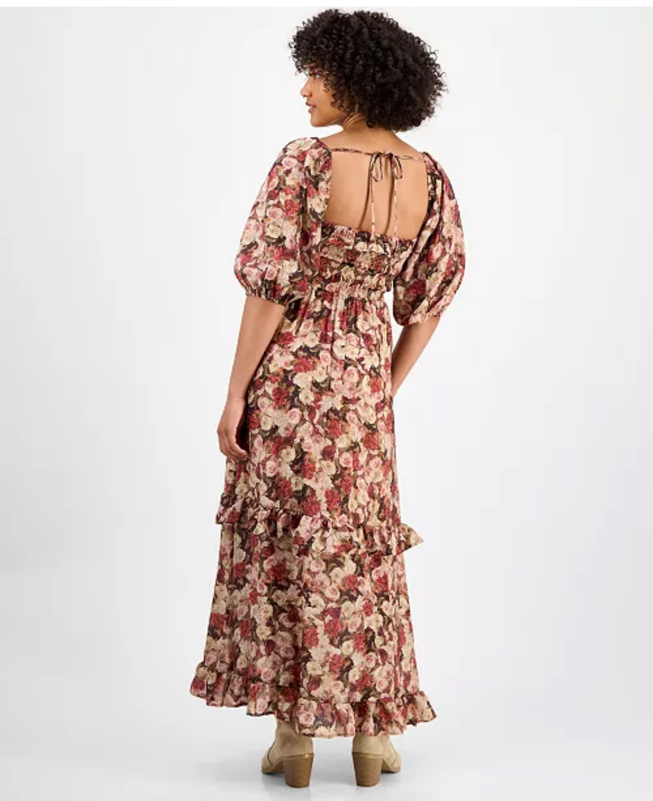 Women’s Ruffle-Trim Puff-Sleeve Maxi Dress